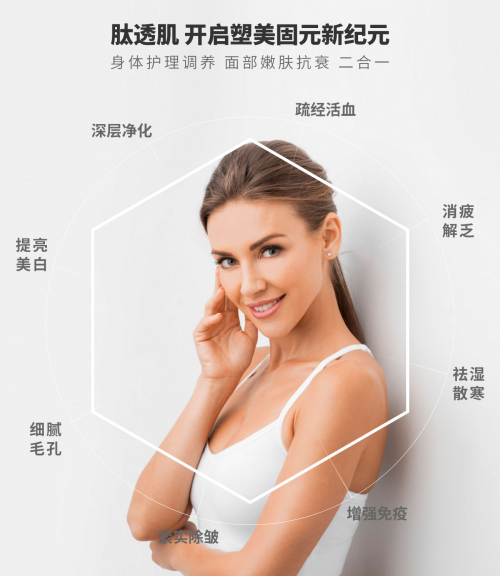 「肽透肌中央仓」是用来身体护理调养和脸部嫩肤抗衰的新型理疗美容器械,面部和身体均可使用。