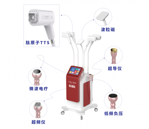 「肽透肌中央仓」集合新TTS、低频负压、微波电疗、射频波、超声波、红蓝光等多重技术的智慧,以现代智能系统精准管控,定量、恒温、恒速释能渗透至皮下18mm,直达穴窍、腑脏,快速进入体循环产生舒疗作用。