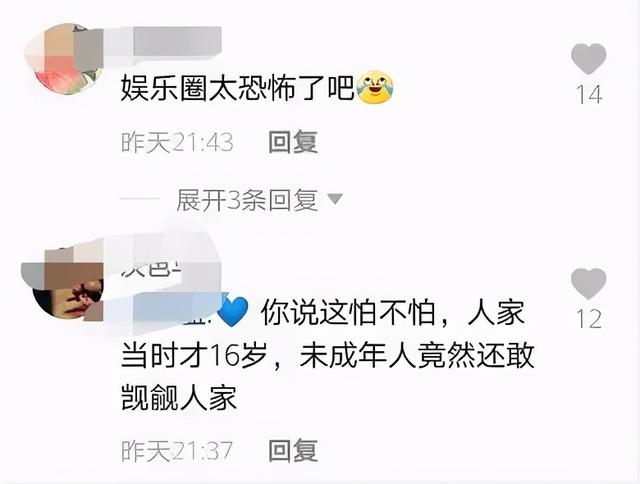 网友说:“娱乐圈太恐怖了吧”、“你说这怕不怕,人家当时才16岁,未成年人竟然还敢觊觎人家!”