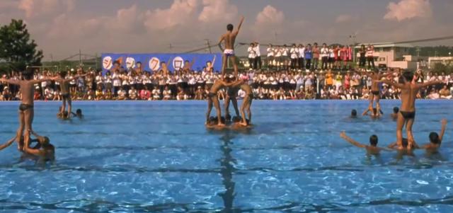 原版男子花游队,演员都晒得很黑,从形象到气质,都尊重训练事实,尊重日式青春片特有的中二热血。