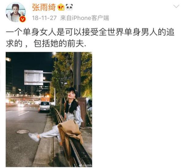 对此,张雨绮大大方方承认并发表爱的宣言:一个单身女人可以接受世界任何单身男人的追求,包括她的前夫。