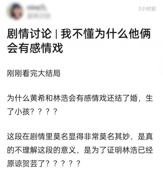 就算不谈两人毫无感情线这件事,黄希最爱的小姨贺芸可是林浩的杀父仇人,以林浩的性格,他连李成阳都能恨到不相往来的地步,又怎么会毫无芥蒂的和黄希结婚生子,让网友感到非常不理解。