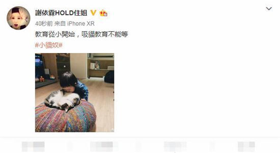 这两天,谢依霖又在网上发布女儿的成长日常。照片上,女儿肉嘟嘟的小脸凑在猫咪身上,真的是好可爱,按妈妈的话说是在“吸猫”,妈妈的配文是“教育从小开始,吸猫教育不能等。”谢依霖是娱乐圈公认的“猫控”,特别喜欢猫咪,如今连女儿都培养成猫控了。