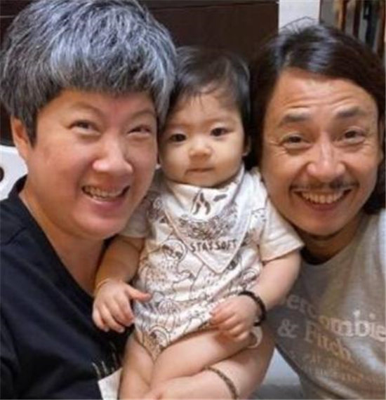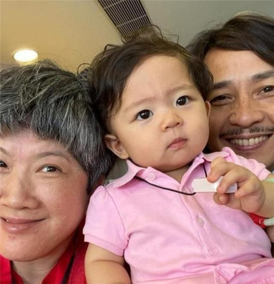 图中才一岁多的黄熙恩身穿着一件连体婴儿服,肉嘟嘟的脸颊显得她非常可爱,黄泽锋留着一头长发十分的随意潇洒,而比他大一岁的妻子陈丽丽则已经满头白发,看上去比黄泽锋还要大上几岁,一家人更像是三代人。